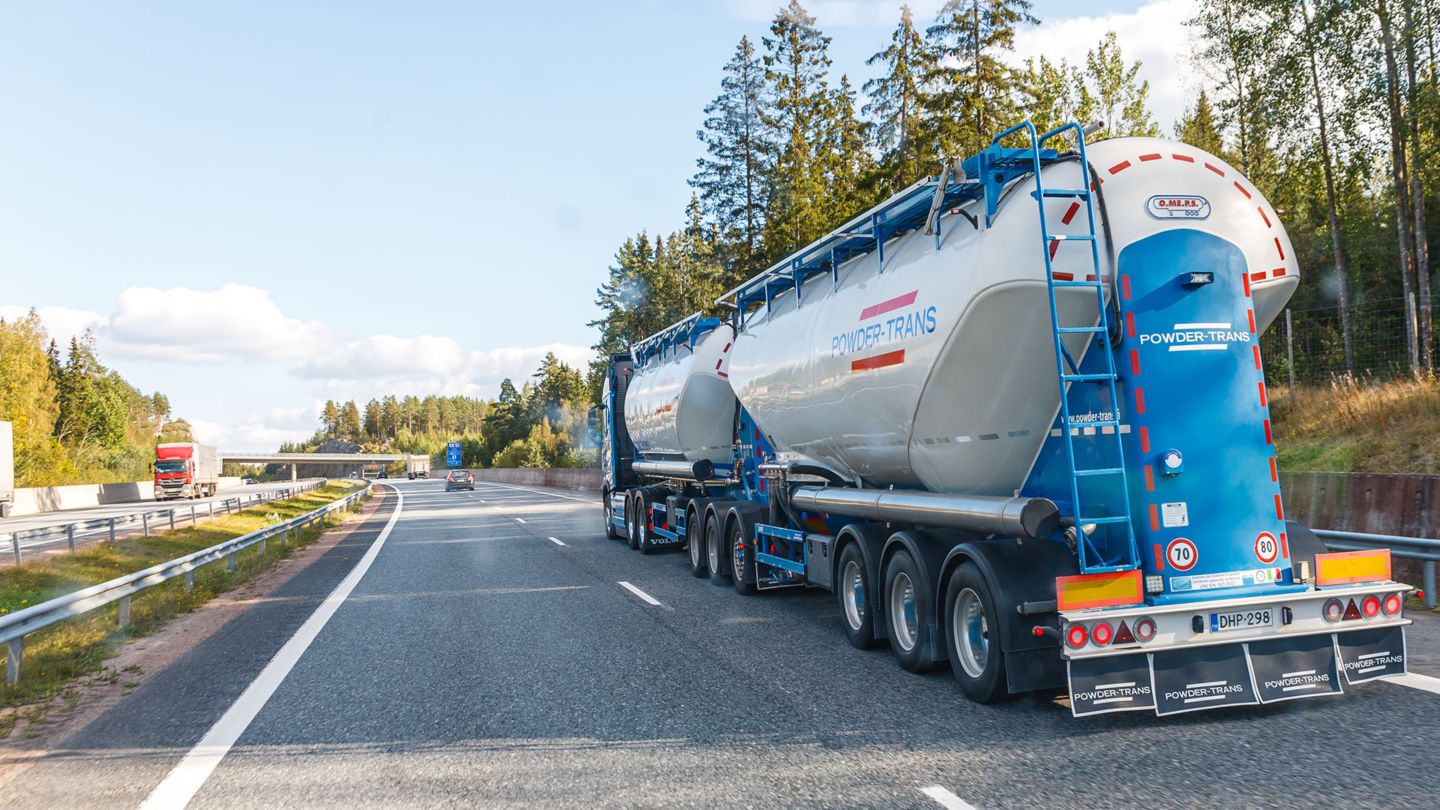 Lietolaisen Powder-Trans Ab Oy:n sinivalkoiset bulkkiyhdistelmät ovat tuttu näky pohjolan maanteillä kulkeville. Loppukesästä yhtiön monilukuinen Volvo kuorma-autokanta täydentyi muutaman vuoden tauon jälkeen uuden sukupolven Volvo FH 500 I-Save 6x4 vetoautolla.