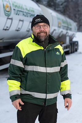 ”Tämä on nyt ensimmäinen Aero-mallinen FH meillä. Toinen maitoauto on vuoden ja seitsemän kuukautta vanhempi ja muuten samanlainen, mutta siinä ei ole Aero-ohjaamoa eikä kamerapeilejä”, neljännen polven kuljetusyrittäjä Janne Honka kertoo.