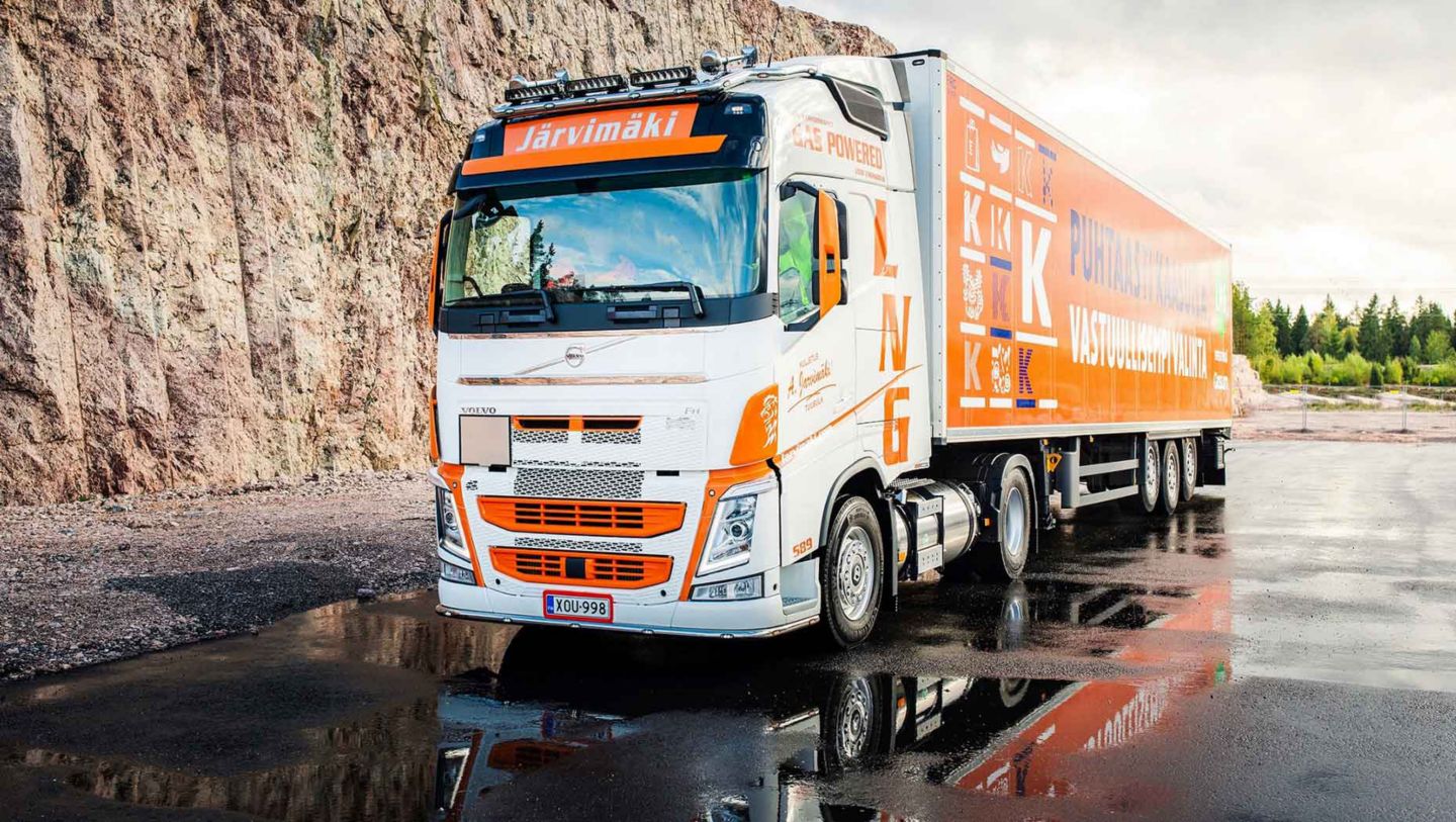 Kuljetus Arto Järvimäki Oy on perustettu vuonna 1987. Se työllistää sata kuljettajaa, jotka ajavat 60 autolla muun muassa elintarvikkeita pääkaupunkiseudulla. Marko Järvimäki tilasi Volvo FH LNG:n viime toukokuussa heti, kun se tuli myyntiin. Luovutus- ja tankkauskoulutuksen jälkeen Volvo FH LNG lähti ajamaan elintarvikkeita Keskolle.