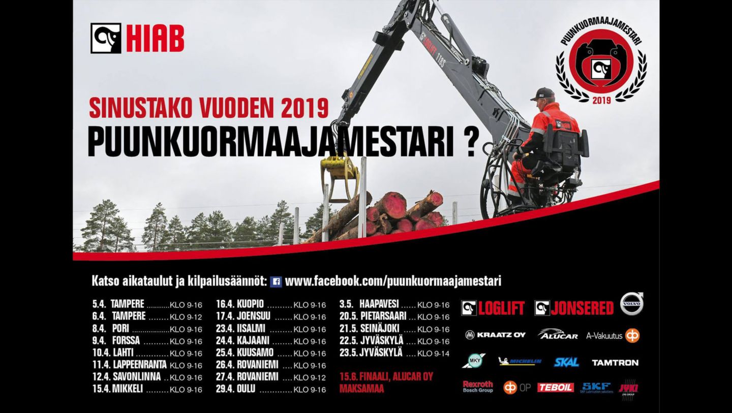 Puunkuormaajamestari-kiertue järjestetään jo 34. kertaa. Tänä vuonna se kiertää 17 paikkakuntaa ja huipentuu 15. kesäkuuta finaalitapahtumaan, joka pidetään Alucarilla Maksamaalla. Jokaisella paikkakunnalla on myös mahdollisuus koeajaa Volvo FH16 750 8x4 puutavara yhdistelmä.