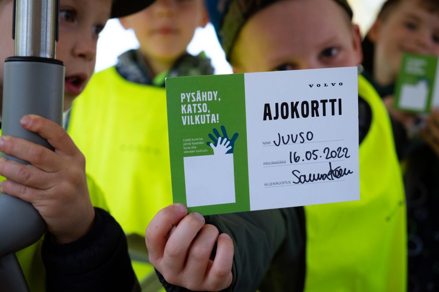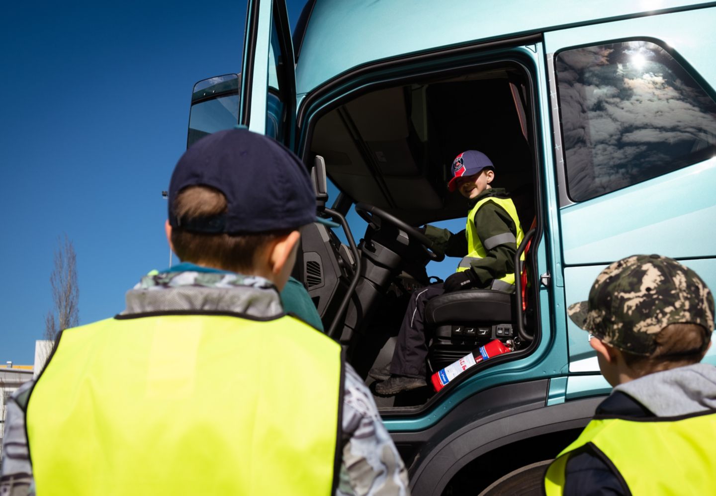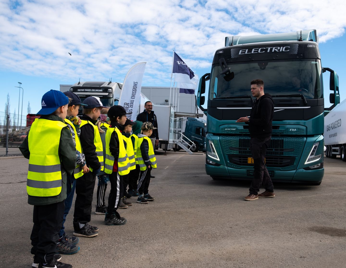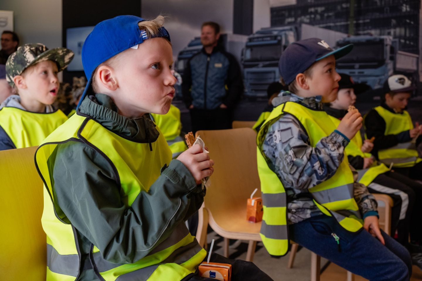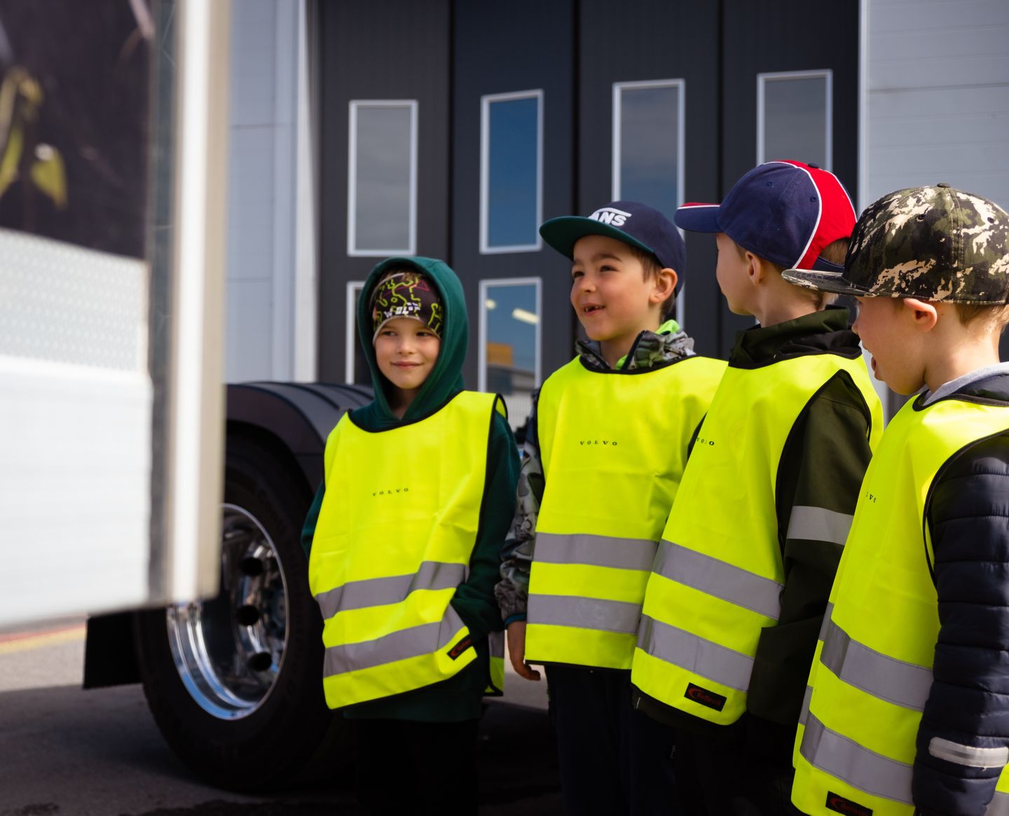 Parinkymmenen hengen esikoululaisryhmä vieraili toukokuun puolessa välissä Vantaan Volvo Truck Centerissä, jossa he pääsivät tutustumaan kuorma-autoihin ja oppivat, miten isojen autojen läheisyydessä tulee liikkua.