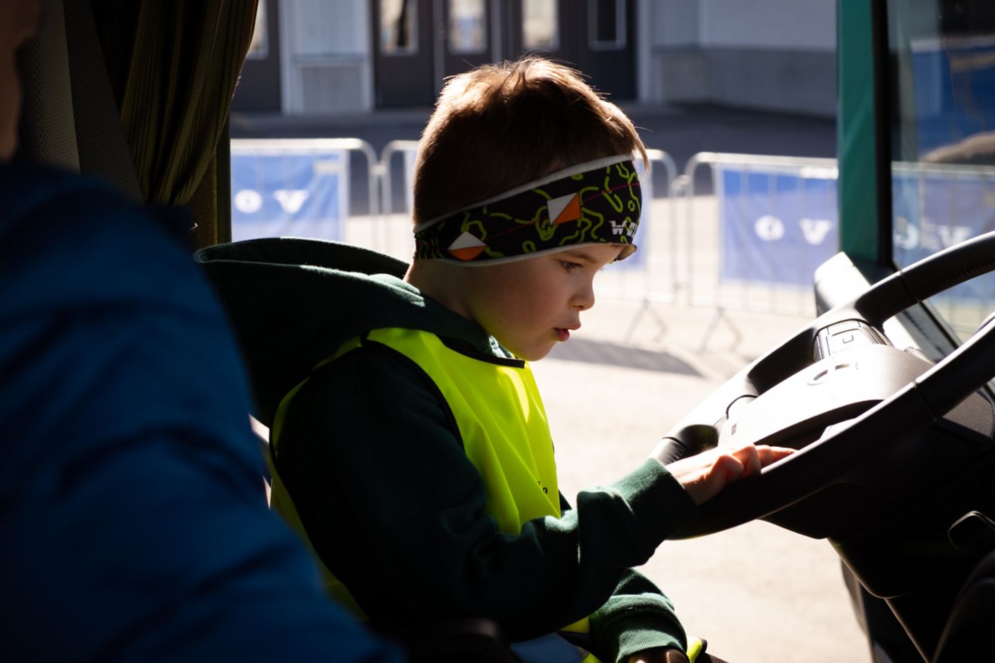 Lapset pääsivät myös itse kiipeämään kuorma-auton ohjaamoon ja toteamaan, keitä vilkuttavia kavereita he näkevät auton ulkopuolella ja ketkä puolestaan jäävät pimentoon kuolleisiin kulmiin. Näin lapsille havainnollistettiin, ettei liian lähellä ajoneuvoa olevaa ihmistä voi nähdä ohjaamosta.