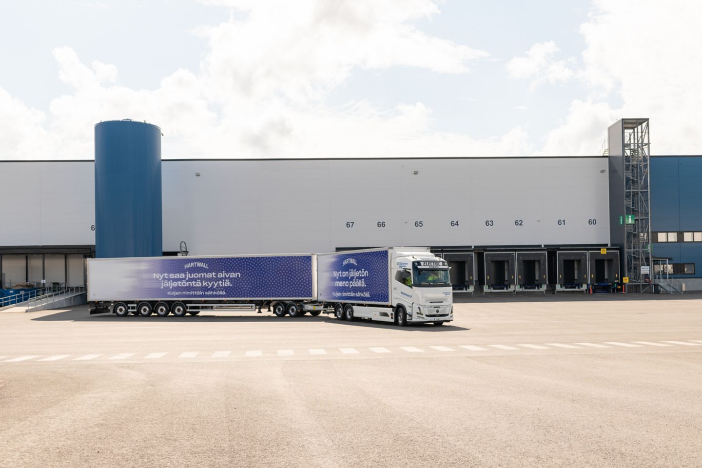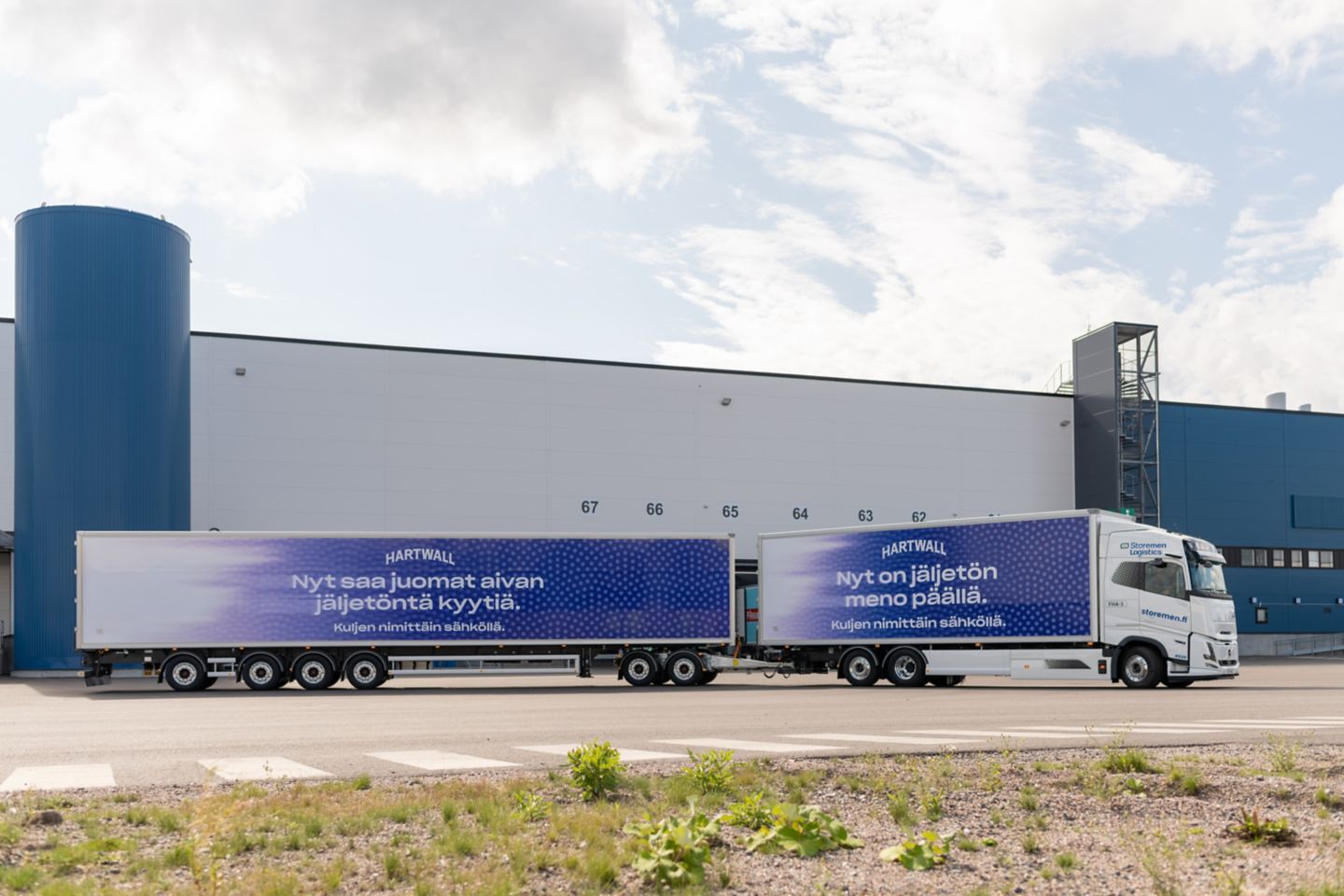 Tutkimustulosten perusteella Hartwallilla on testattu päästöttömiä logistiikkaratkaisuja. Viimeisimpänä hankittiin ajoon sähköllä kulkeva yli 31-metrinen ajoneuvoyhdistelmä.